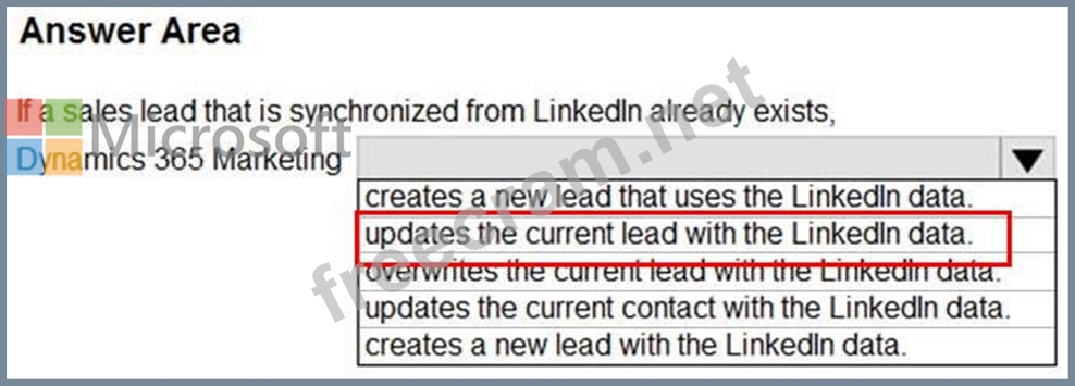 Question 36: A company integrates LinkedIn Campaign Manager with Dynamics...