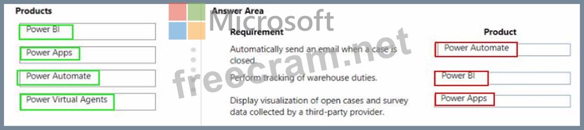 Which products should you recommend? To answer, drag the appropriate products to the correct requirements. Each product may be used once, more than once, or not at all. You may need to drag the split bar between panes or scroll to view content.