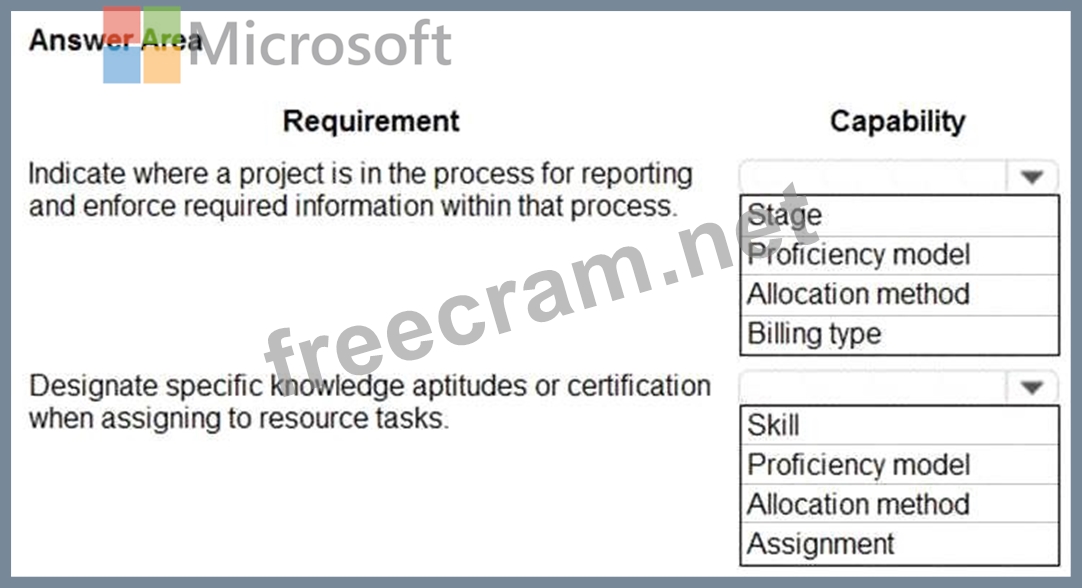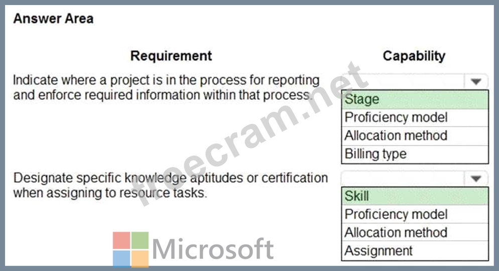 A company plans to implement Dynamics 365 Project Operations. You need to recommend a capability that meets each requirement. Which capability should you recommend? To answer, select the appropriate option in the answer area. NOTE: Each correct selection is worth one point.