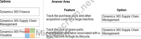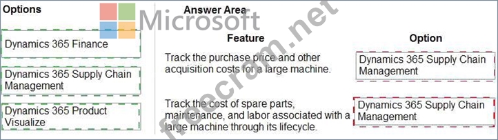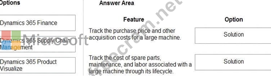 A company plans to implement enterprise asset management. You need to recommend solutions for the company. What should you recommend? To answer, drag the appropriate solutions to the correct requirements. Each solution may be used once, more than once, or not at all. You may need to drag the split bar between panes or scroll to view content. NOTE: Each correct selection is worth one point.