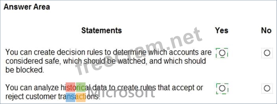 A company is evaluating Dynamics 365 Fraud Protection. You need to help the customer understand the features that are available. Instructions: For each of the following statements, select Yes if the statement is true. Otherwise, select No. NOTE: Each correct selection is worth one point.