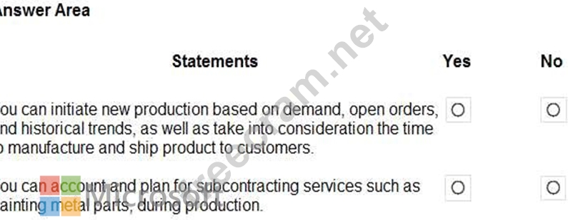 For each of the following statements, select Yes if the statement is true. Otherwise, select No.