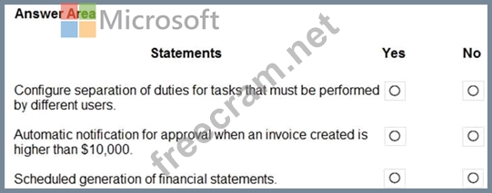 A company plans to implement Dynamics 365 Finance as their financial system. The company needs to know which features the system supports.