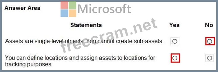 A company uses Dynamics 365 Supply Chain Management. The company plans to implement Asset Management.