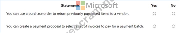 Question 101: A company uses Dynamics 36S Finance. For each of the followi...