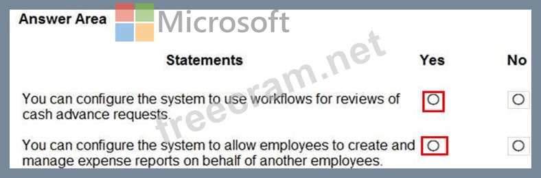 Question 101: A company uses Dynamics 36S Finance. For each of the followi...