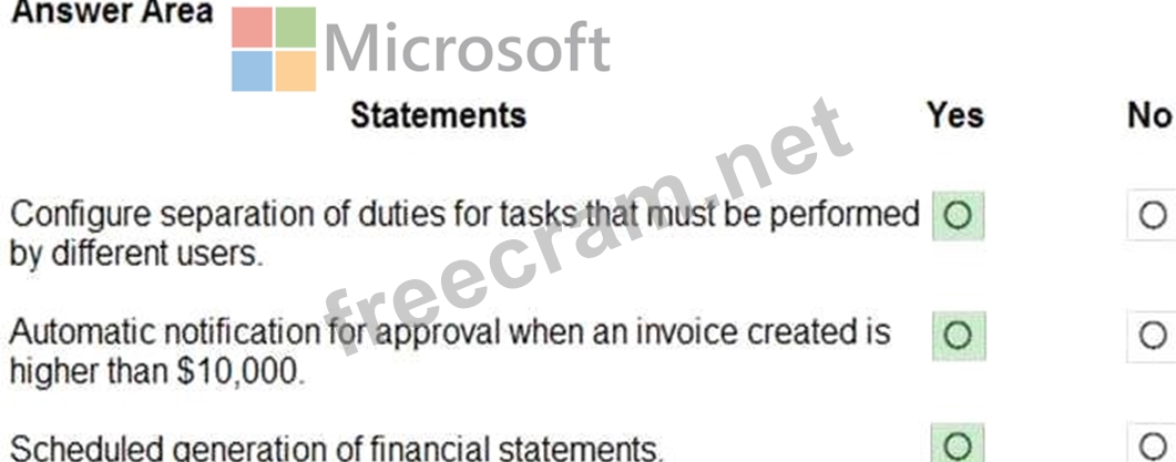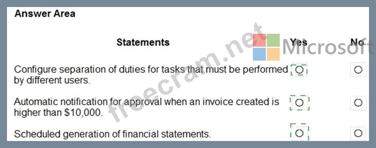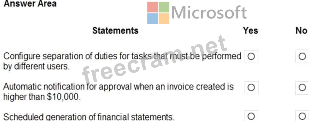 Question 101: A company uses Dynamics 36S Finance. For each of the followi...