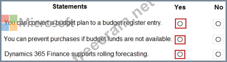 Question 101: A company uses Dynamics 36S Finance. For each of the followi...