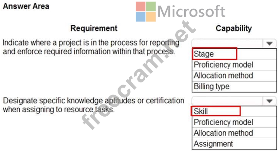 A company plans to implement Dynamics 365 Project Operations. You need to recommend a capability that meets each requirement.