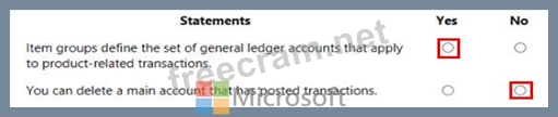 Question 101: A company uses Dynamics 36S Finance. For each of the followi...