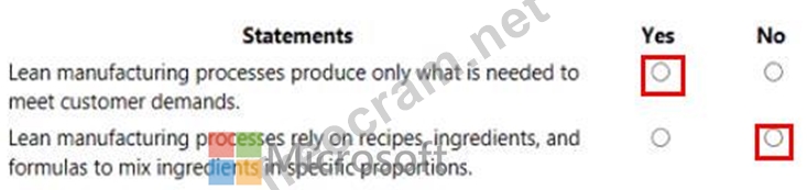 Instructions: For each of the following statements, select Yes if the statement is true. Otherwise, select No.