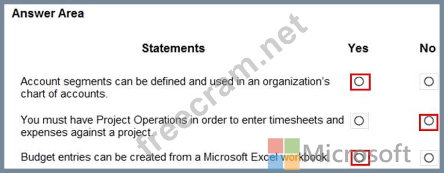Question 101: A company uses Dynamics 36S Finance. For each of the followi...