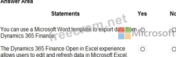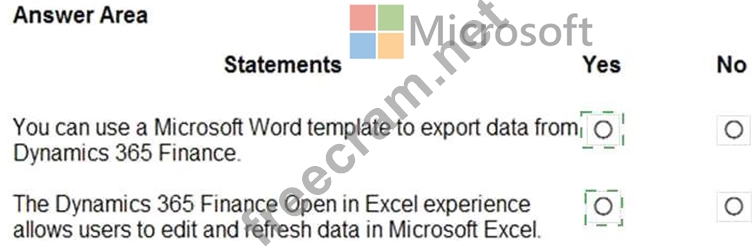 Question 101: A company uses Dynamics 36S Finance. For each of the followi...