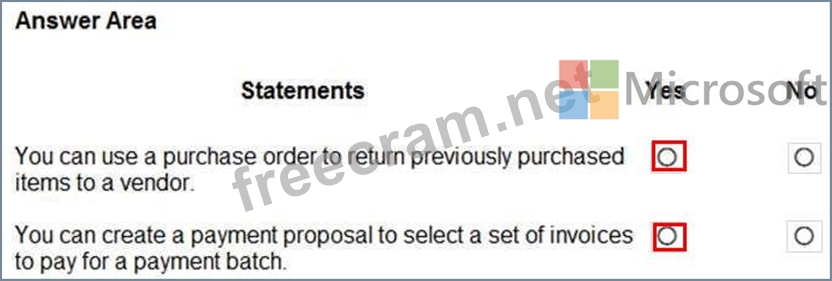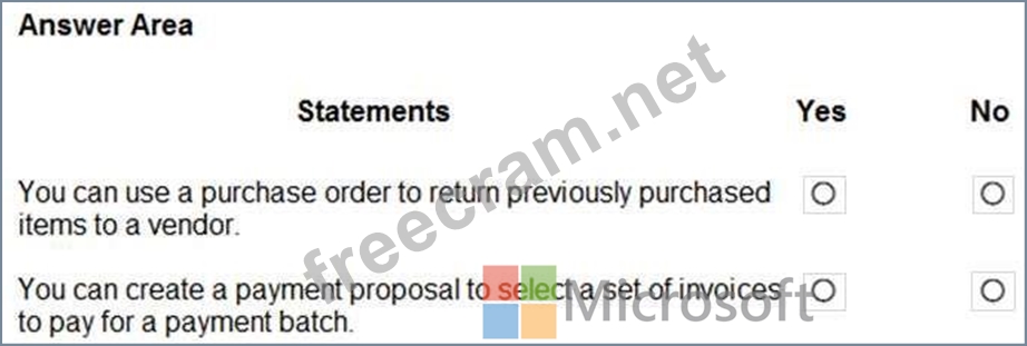 Question 101: A company uses Dynamics 36S Finance. For each of the followi...