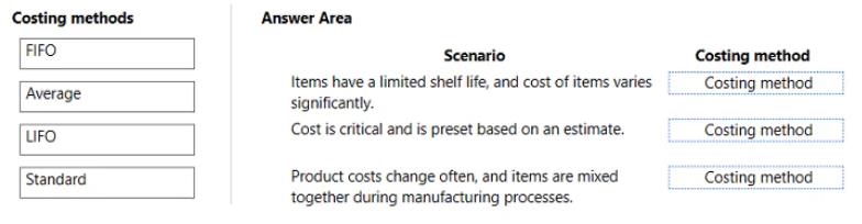 What should you recommend? To answer, drag the appropriate costing methods to the correct scenarios. Each costing method may be used once, more than once, or not at all. You may need to drag the split bar between panes or scroll to view content NOTE: Each correct selection is worth one point.
