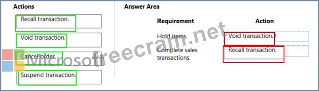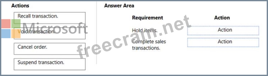 What should you recommend? To answer, drag the appropriate actions to the correct requirements. Each action may be used once, more than once, or not at all. You may need to drag the split bar between panes or scroll to view content.