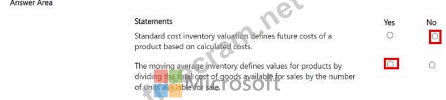 Instructions: For each of the following statements, select Yes if the statement is true. Otherwise, select No.