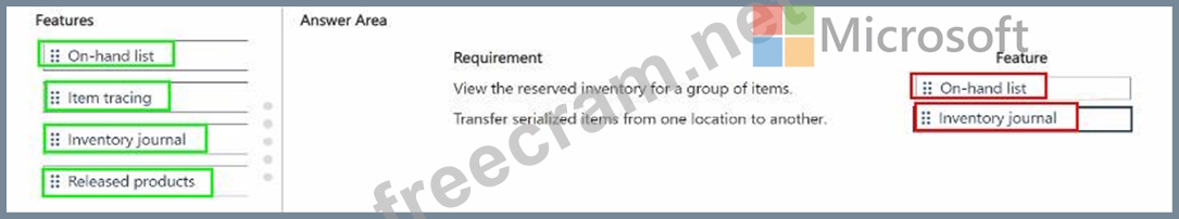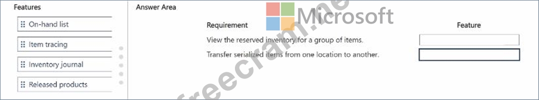 Which features should you use? To answer, drag the appropriate features to the correct requirements. Each feature may be used once, more than once, or not at all. You may need to drag the split bar between panes or scroll to view content.