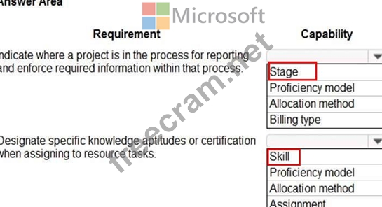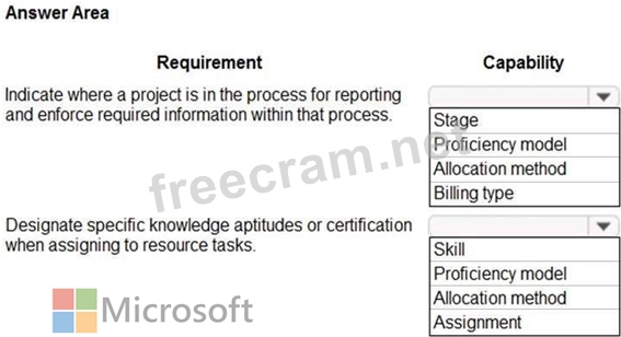 A company plans to implement Dynamics 365 Project Operations. You need to recommend a capability that meets each requirement.