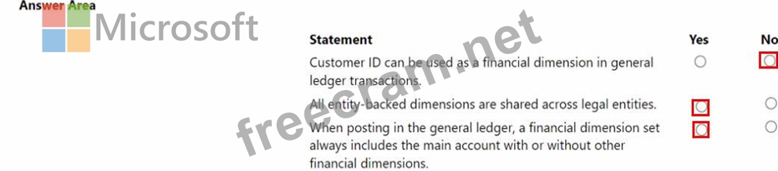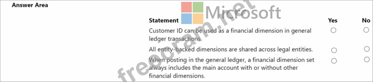 Question 57: A company uses Dynamics 365 Finance. Instructions: For each ...