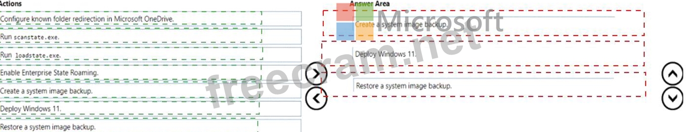Which three actions should you recommend be performed in sequence? To answer, move the appropriate actions from the list of actions to the answer area and arrange them in the correct order.