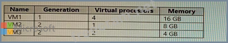 You have a Hyper-V host that contains the virtual machines shown in the following table.