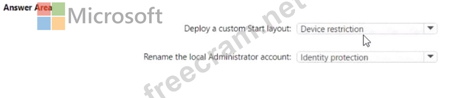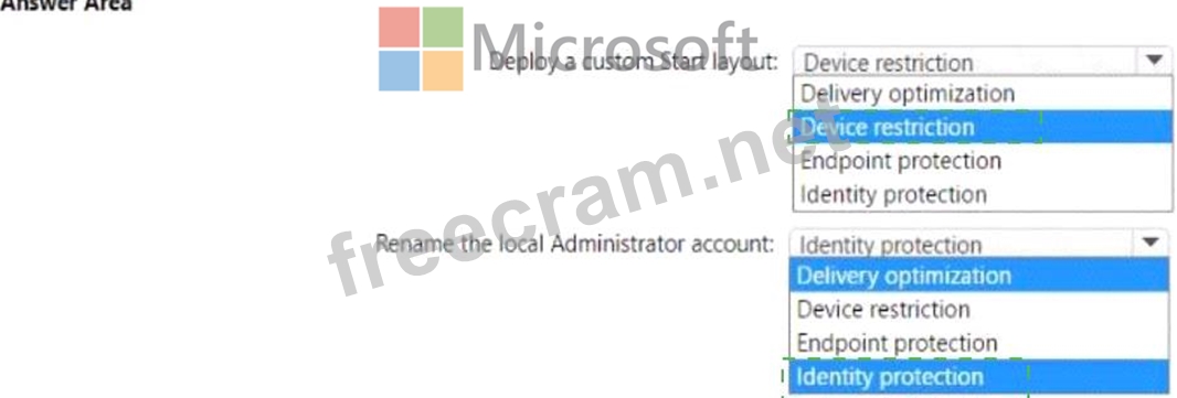 You have a Microsoft 365 subscription that uses Microsoft Intune and contains 100 Windows 10 devices. You need to create Intune configuration profiles to perform the following actions on the devices: