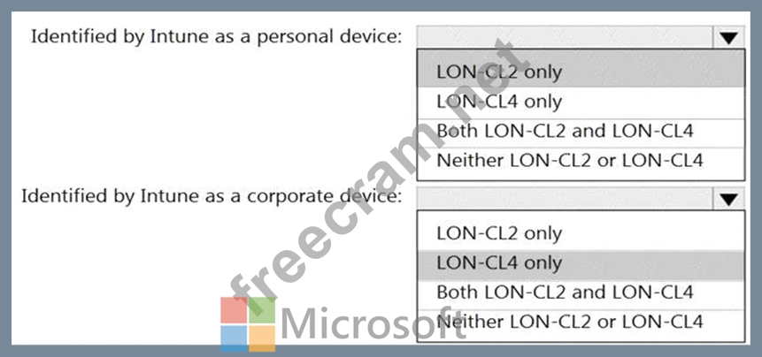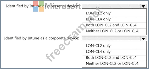 You have a Microsoft 365 tenant that uses Microsoft Intune to manage personal and corporate devices. The tenant contains three Windows 10 devices as shown in the following exhibit.