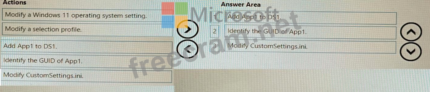These are the three actions you need to perform to ensure that App1 will be installed for all the task sequences that deploy the Windows 11 image from DS1. I hope this helps you.