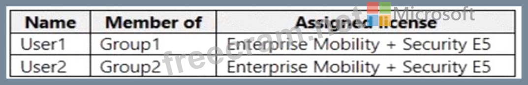 You have an Azure Active Directory Premium Plan 2 subscription that contains the users shown in the following table.