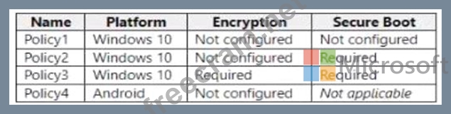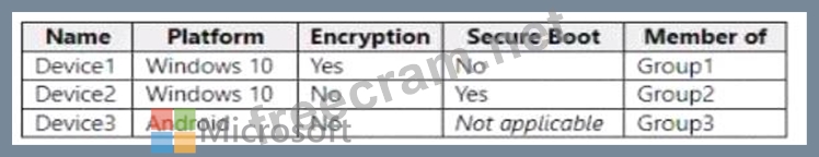 You have devices enrolled in Microsoft Intune as shown in the following table.