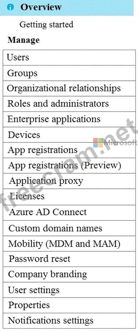 Which two settings should you configure from the Azure Active Directory blade? To answer, select the appropriate settings in the answer area.