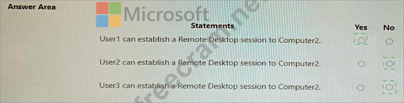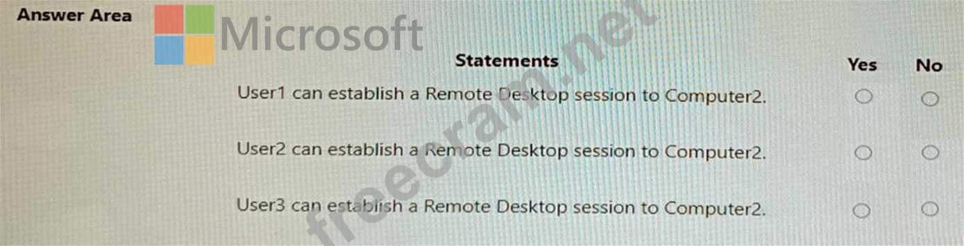 Your network contains an Active Directory domain named adatum.com. The domain contains two computers named Computer1 and Computer2 that run Windows 10. Remote Desktop is enabled on Computer2.