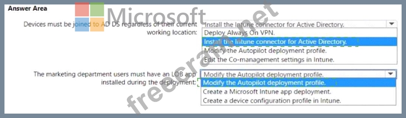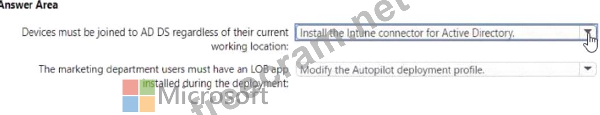 * Users in the marketing department must have a Iine-of-business (LOB) app installed during the deployment.