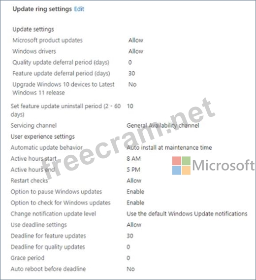 You create a new update rings policy named Policy1 as shown in the following exhibit.