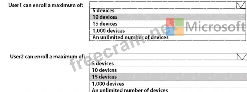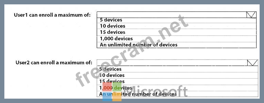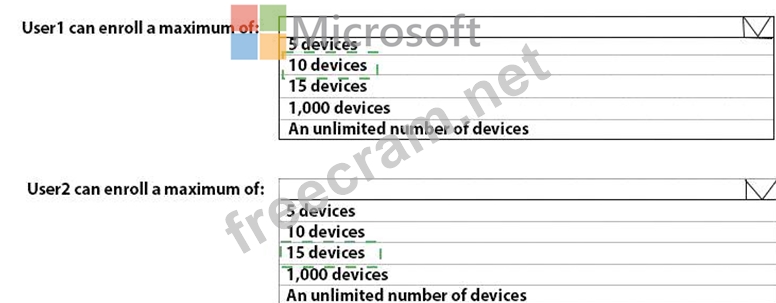 What is the maximum number of devices that User1 and User2 can enroll in Intune? To answer, select the appropriate options in the answer area.