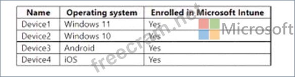 Question 50: You have devices enrolled in Microsoft Intune as shown in th...
