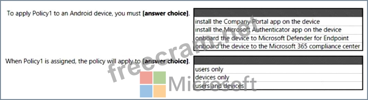 Question 6: You have a Microsoft Entra tenant that contains the devices ...