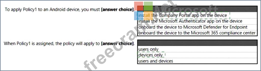 Question 78: In Microsoft Intune, you have the device compliance policies...