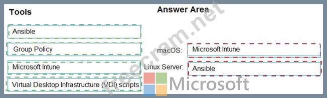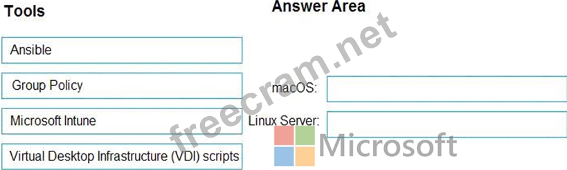 What should you use to onboard each device? To answer, drag the appropriate tools to the correct device types. Each tool may be used once, more than once, or not at all. You may need to drag the split bar between panes or scroll to view content.