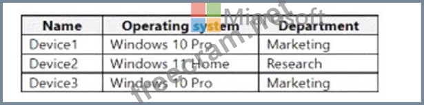 Question 23: You have a Microsoft 365 tenant that contains the devices sh...