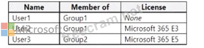 You have a Microsoft 365 subscription that uses Microsoft Intune and contains the users shown in the following table.