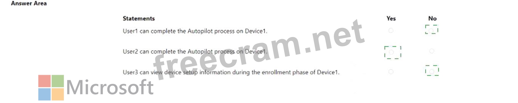 For each of the following statements, select Yes if the statement is true. Otherwise select No.