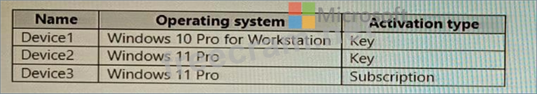 Question 87: You have the devices shown in the following table. (Exhibit)...