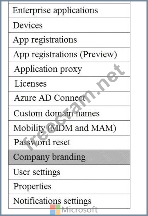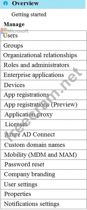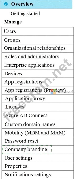 Which two settings should you configure from the Azure Active Directory blade? To answer, select the appropriate settings in the answer area.