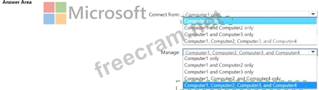 The domain contains four computer named Computer 1. Computet2. Computed, and Computer4 that run Windows 10. Vou perform the following actions: