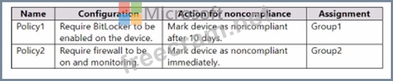 You create and assign the compliance policies shown in the following table.
