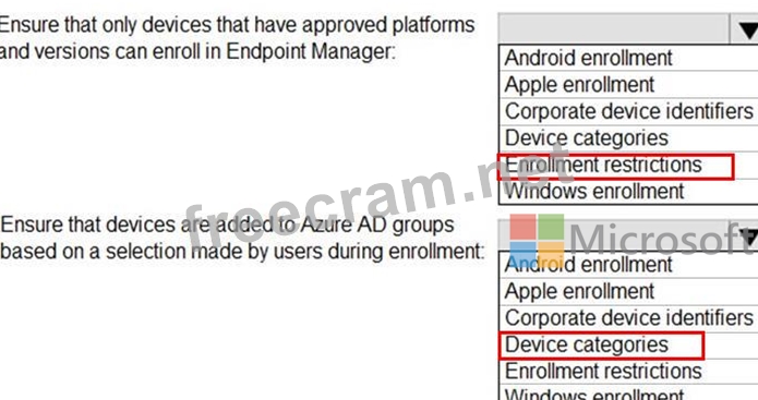 You plan to enroll devices in Microsoft Endpoint Manager that have the platforms and versions shown in the following table.
