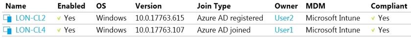 Question 25: You have devices enrolled in Microsoft Intune as shown in th...