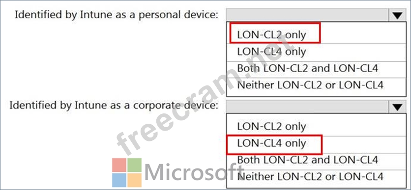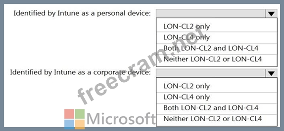 You have a Microsoft 365 tenant that uses Microsoft Intune to manage personal and corporate devices. The tenant contains three Windows 10 devices as shown in the following exhibit.